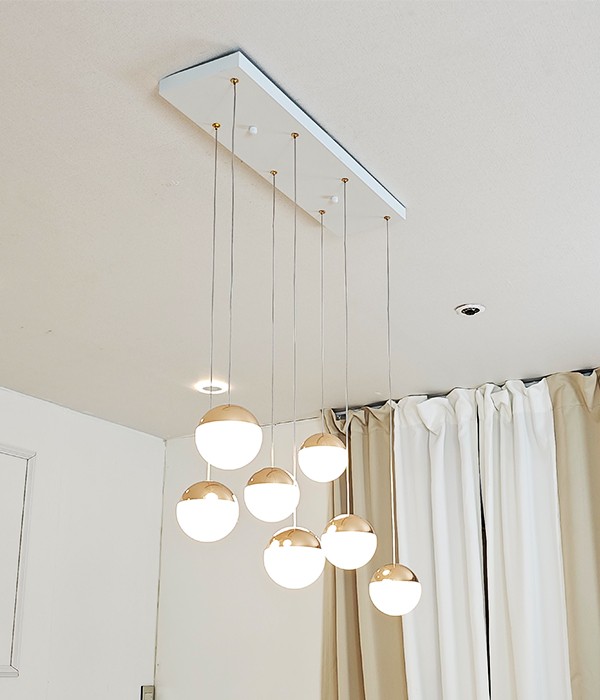 2줄로 나누어진 일곱가지 원 모양 조명